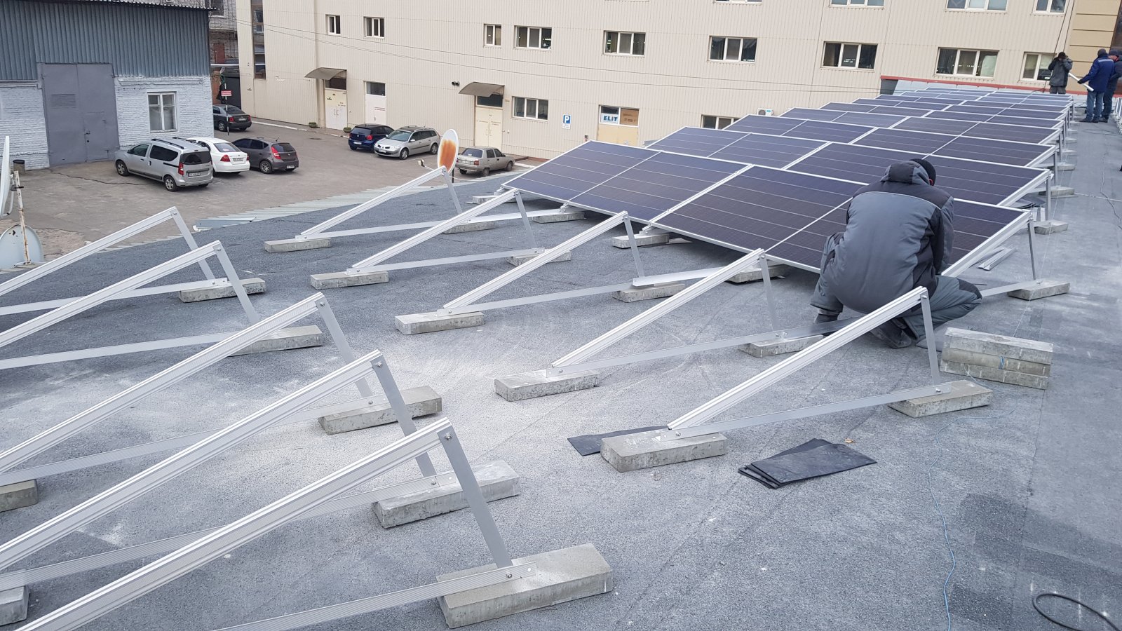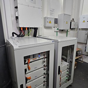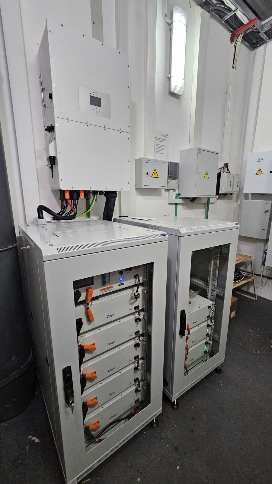 - гібридна сонячна станція з акумуляторними батареями з розташуванням сонячних панелей на плоскому даху офісного приміщення, та похилих дахах складських та господарчих приміщень без підключення до Зеленого тарифу.Проектні параметри сонячної станції: