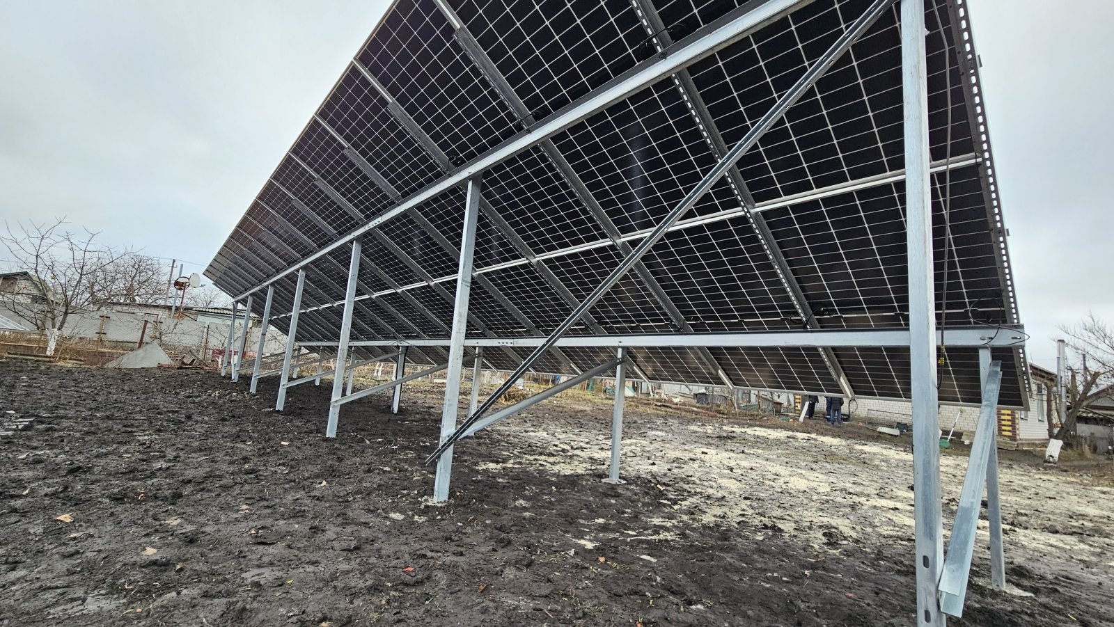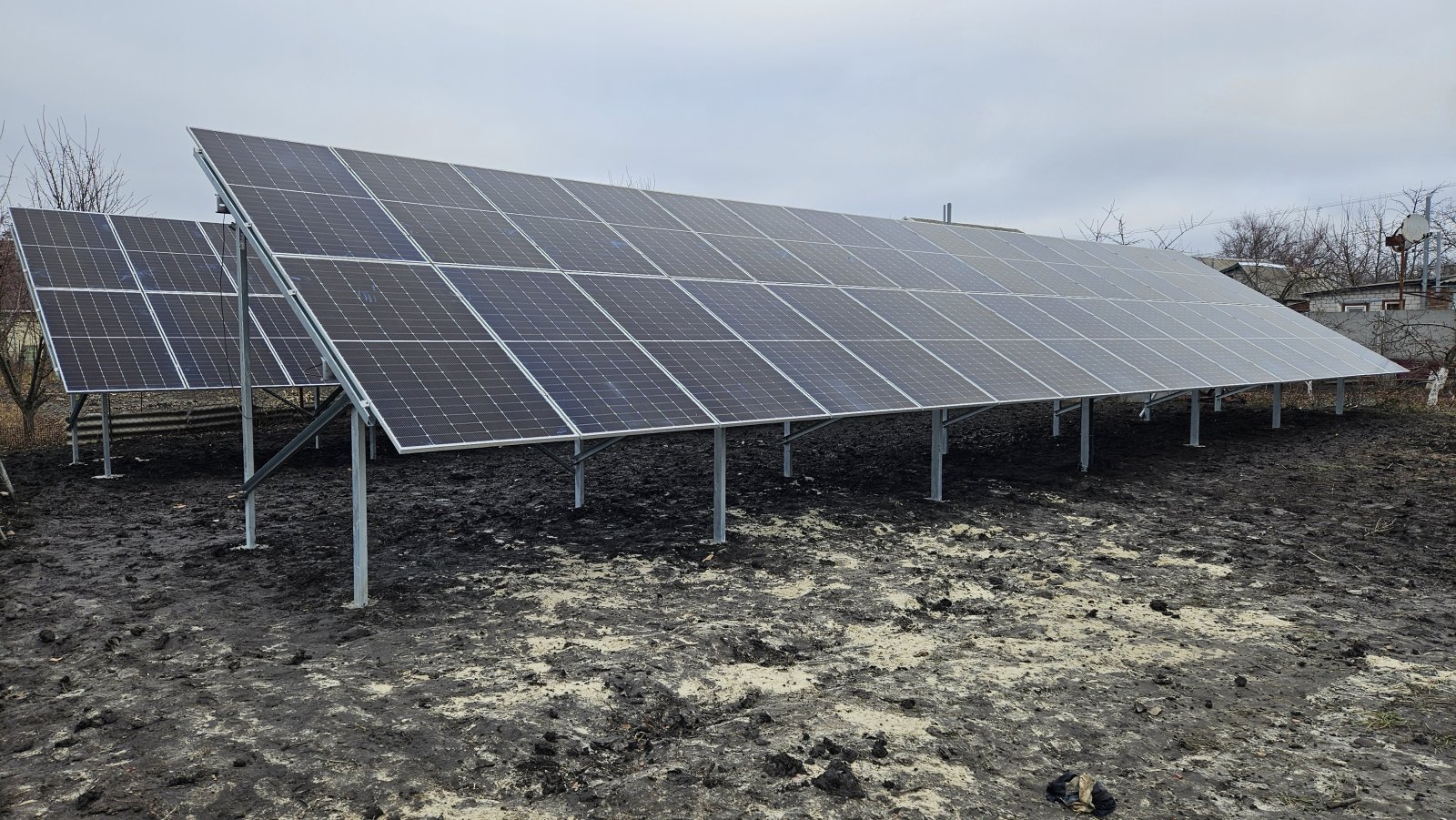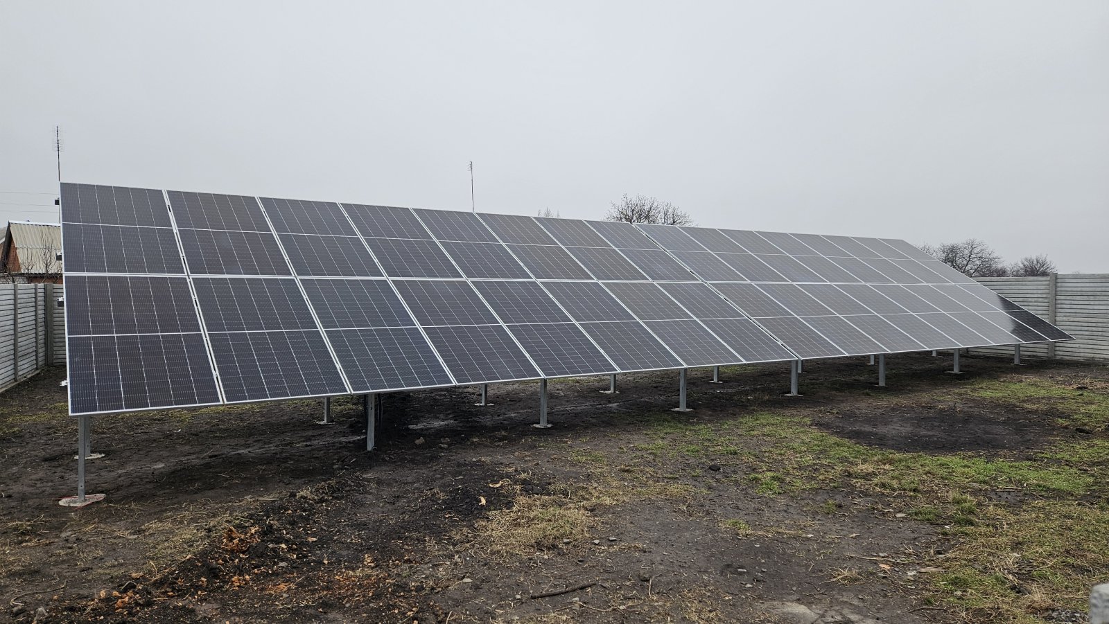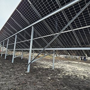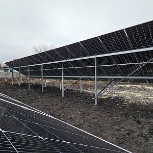 сонячна станція під Зелений тариф із наземним розташуванням сонячних фотомодулів на двох дворядних оцинкованих металоконструкціях