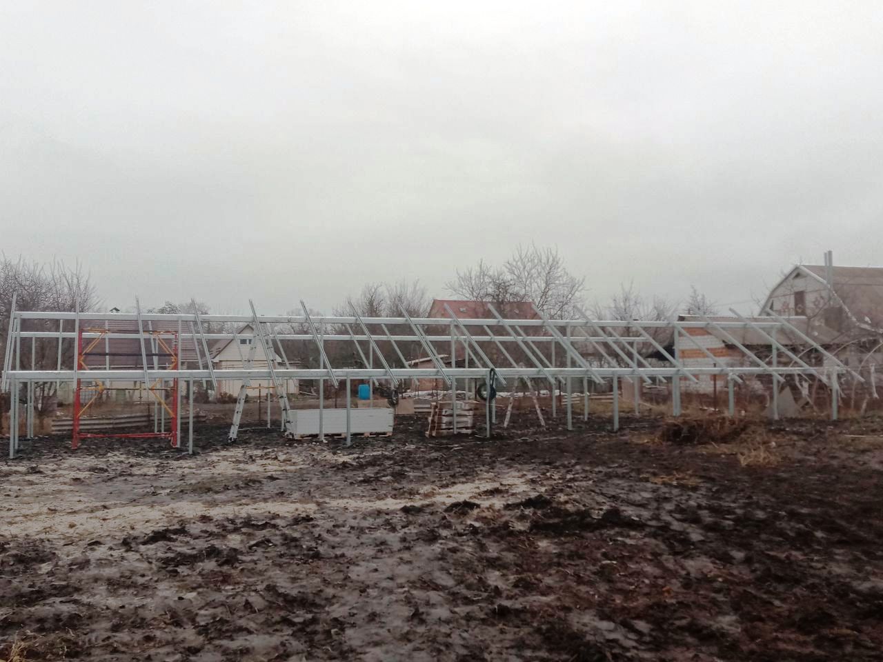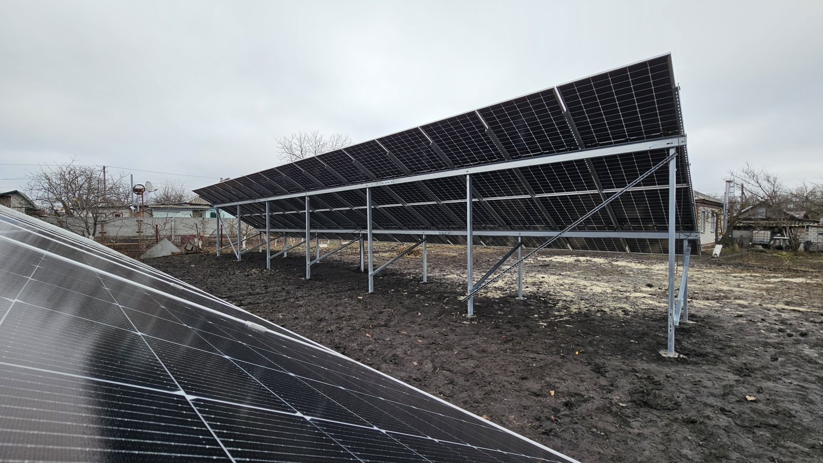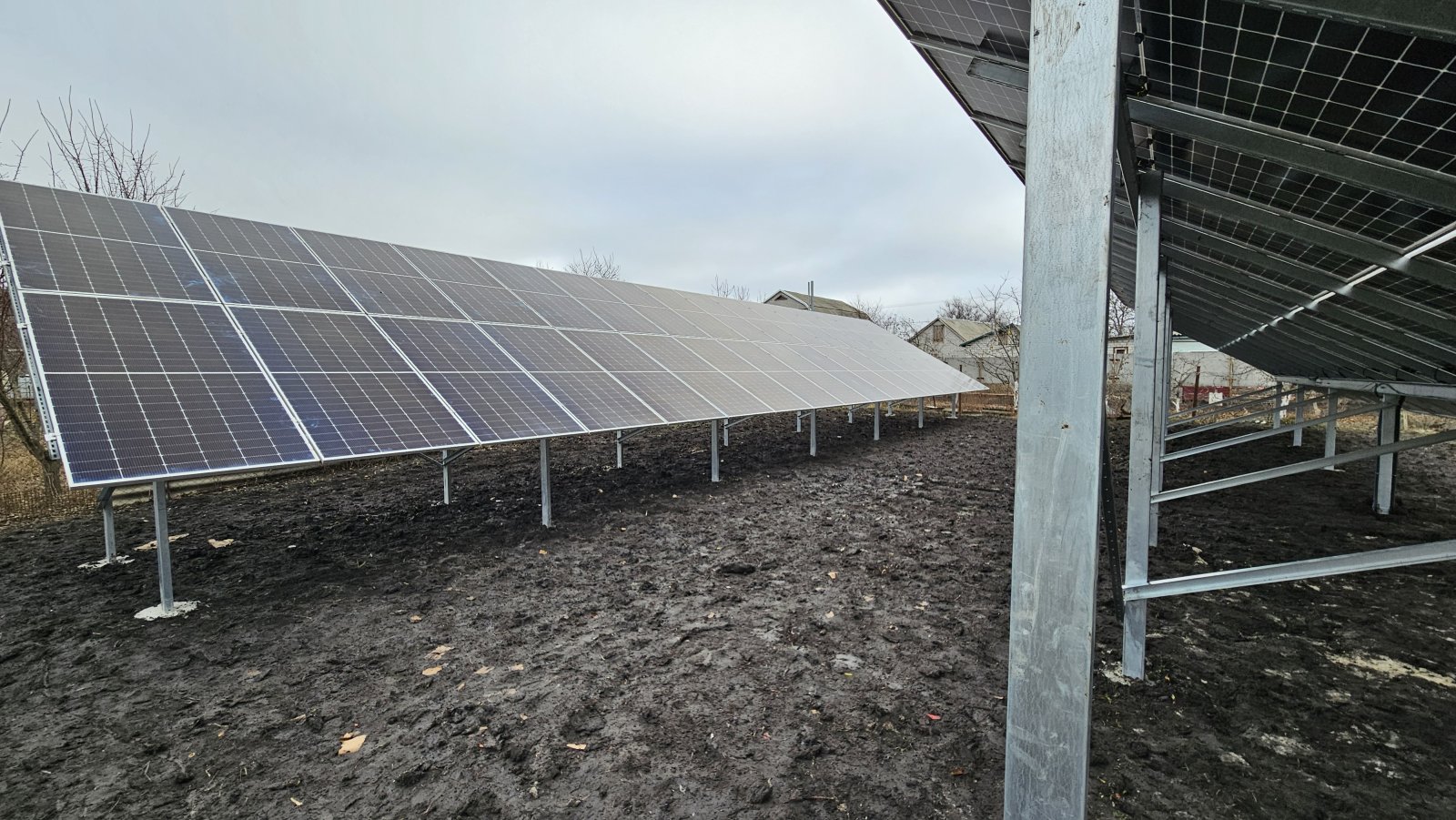 сонячна станція під Зелений тариф із наземним розташуванням сонячних фотомодулів на двох дворядних оцинкованих металоконструкціях