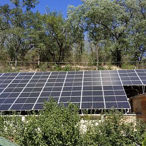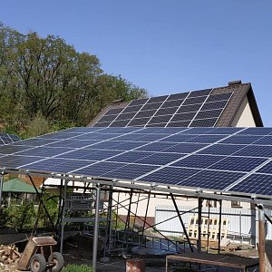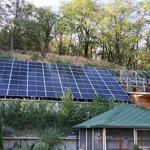 Розташування: м. Світловодськ, Кіровоградська областьРозташування сонячних панелей на покрівлі будинку та металоконструкції на ділянці