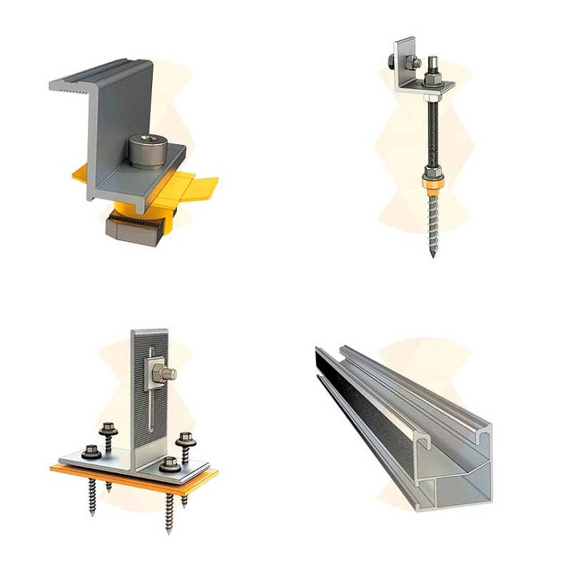 Комплектація рейкової алюмінієвої системи кріплення сонячних панелей: