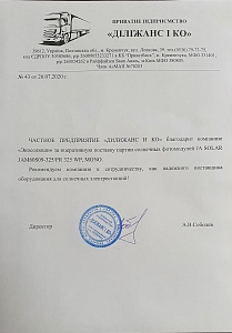 Відгук нашого клієнта власника сонячних станцій в Глобинському та Кременчуцькому районі