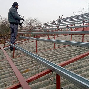 Незважаючи на холодні дні з морозцем, продовжуємо роботи з монтажу дахової сонячної електростанції потужністю 10 кВт під зелений тариф у с. Кияшки (Кременчуцький район). Наразі змонтовані профілі, незабаром приїдуть сонячні панелі та монтаж продовжиться.